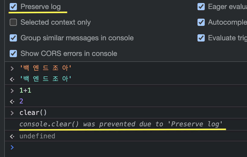 다만, 메소드를 사용하는 방식은 Preserve log에 체크가 되어 있으면 로그를 지우지 않는다